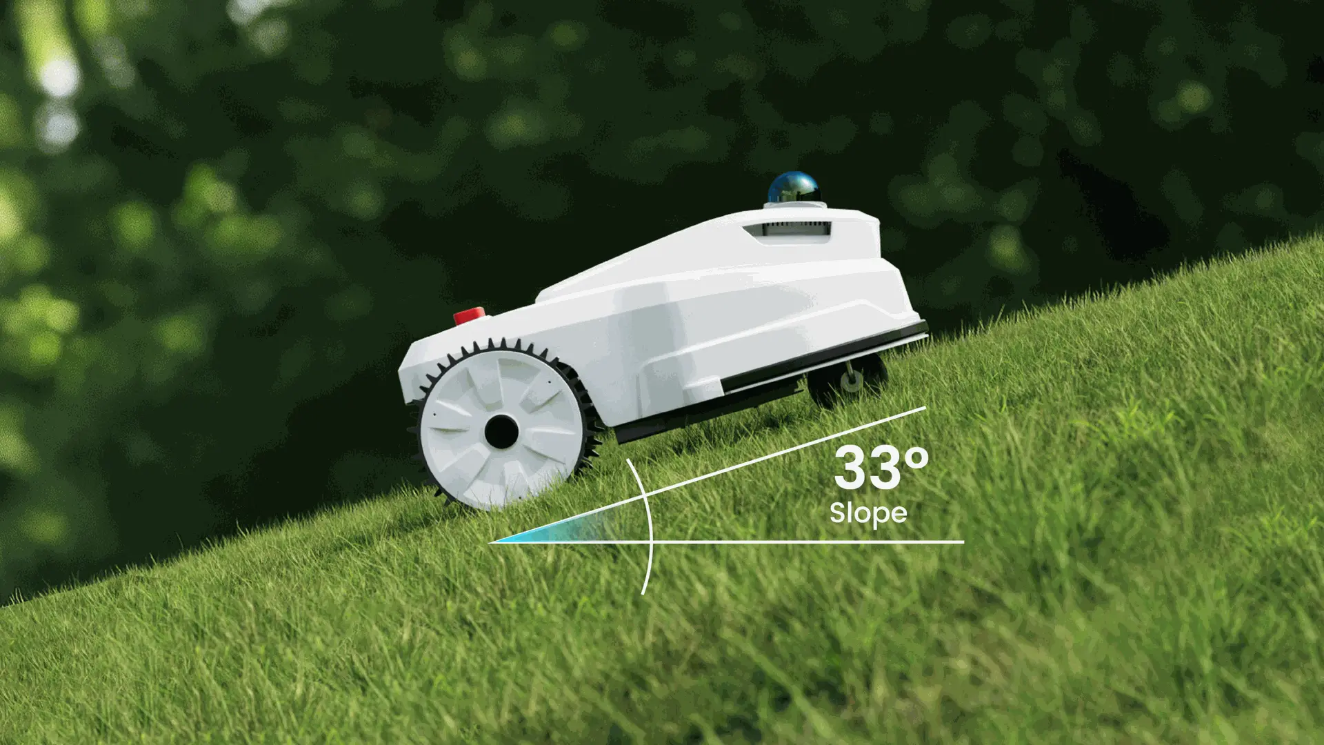 Not all robotic mowers are designed for steep slopes. Each model has a maximum slope rating, usually measured in degrees or percentage incline. While most consumer-grade models handle 20–25° slopes, both FJDynamics FR4000 and FV2000 can tackle slopes up to 33° (approximately 65%). Knowing these limits ensures safety and effective mowing.