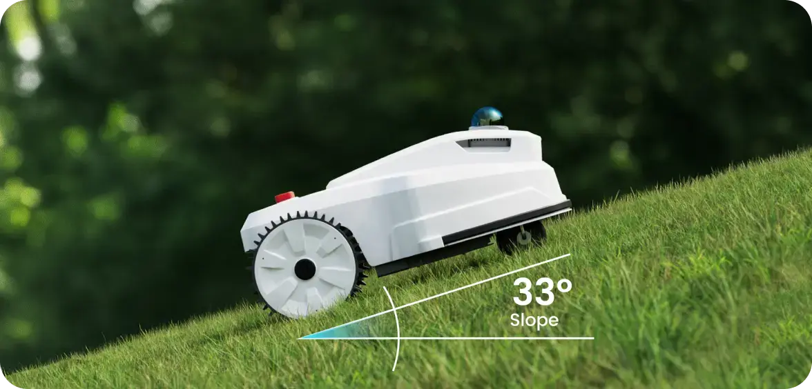 Unmatched Hill Climb Ability for Rugged Terrain. Experience flawless performance on 33% grades. Robot lawn mower's robust slope climbing capability ensures confident operation across all terrains.